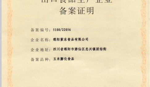 2017年10月18日,我公司通过政府主管部门的严格审查,顺利拿到了由四川出入境检验检疫局颁发的出口食品备案证明。